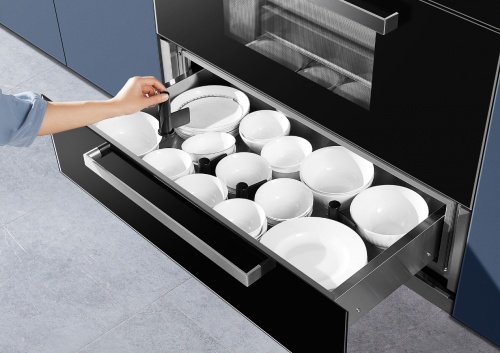 此外,老板集成油烟机蒸烤一体款还拥有48L大容量的碗柜,满足一家多口的餐具收纳需求,中式餐具各种形状也不怕,内设调节收纳支架能根据餐具尺寸调节间距,家里宝宝使用的可可爱爱的餐具,终于能有地方放置了,使用起来特别方便。